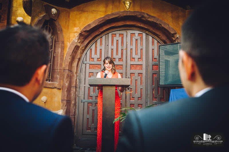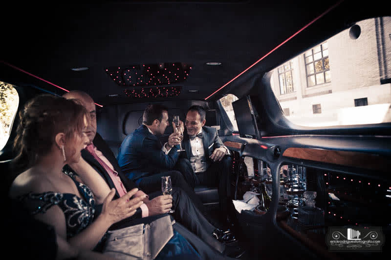 El día de su boda fue un compendio de sentimientos, risas, emociones y complicidad. Fue un privilegio ser testigo en primera persona de las emociones de sus respectivos padres en el hotel cuando les preparaban para la ceremonia, y en la limousine, donde comenzaros los brindis. No menos emotiva fue la maestra de ceremonias que no siendo profesional de estas lides se desenvolvió de manera yo diría que magistral porque combinó bromas muy acertadas que nos hicieron destornillarnos de la risa con momentos realmente emotivos donde mas de uno soltó la lágrima y todo ello con una soltura poco usual.
