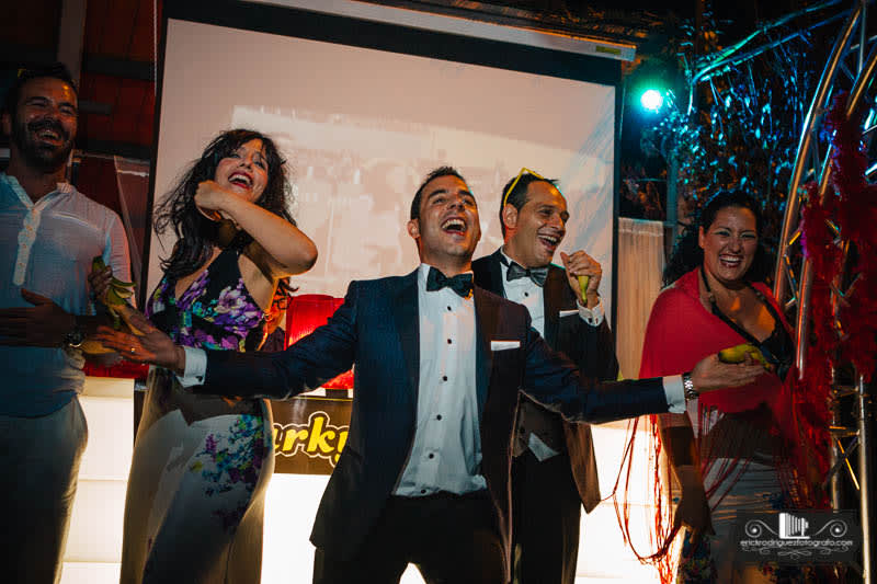 La ceremonia y luego fiesta tuvo lugar en el Restaurante Torreluna, el cual se ha convertido en un magnifico sitio de eventos en Zaragoza Capital. Torreluna dio mucho juego porque después de la cena había un espectáculo que resulto muy cañero, aquí ya los invitados se desmelenaron de lo lindo. ¡Doy fé de ello!